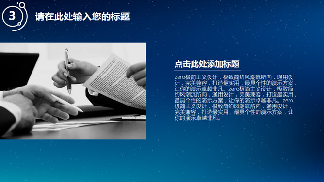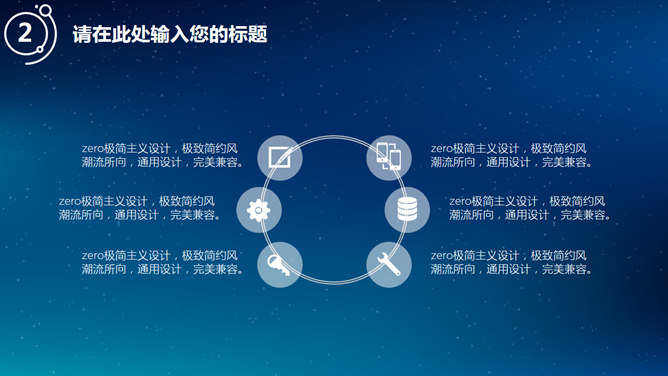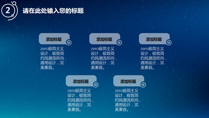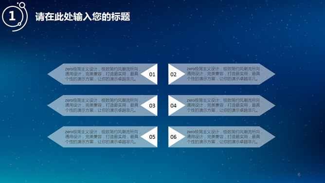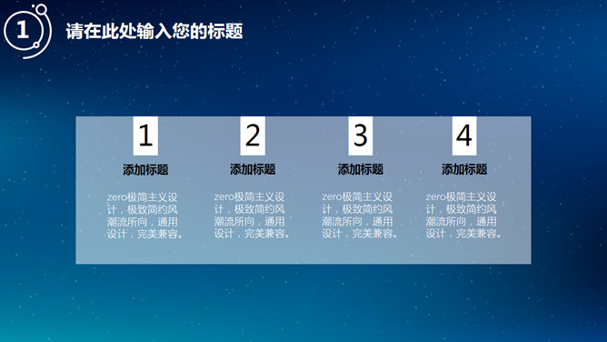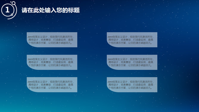 简约蓝色星空IOS风PPT模板。一套简洁通用幻灯片模板,蓝色星空背景,IOS设计风格,使用字体: