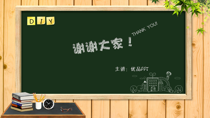 木板黑板PPT教学课件模板。一套教育教学课件模板,清新自然木板黑板粉笔字效果设计。使用字体: