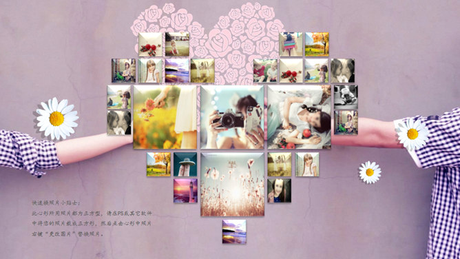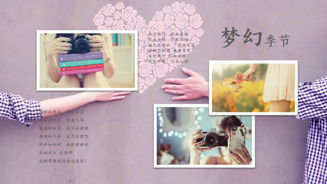 浪漫情侣爱情照片相册PPT模板。一套相片相册幻灯片模板,以牵手情侣手臂为背景,适合恋人照片展示纪念使用。
