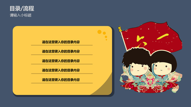 扁平化六一儿童节PPT模板。一套精美儿童节主题幻灯片模板,扁平化矢量设计风格,动态播放效果。