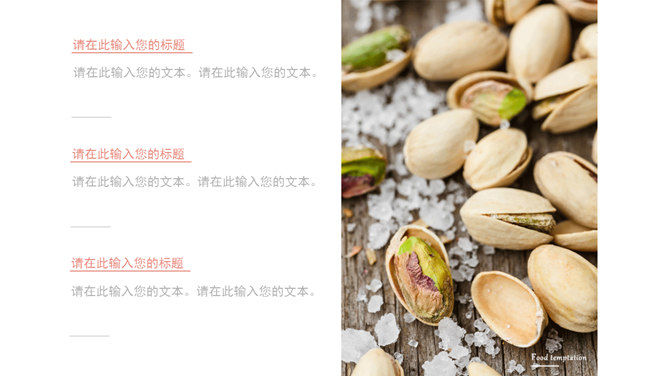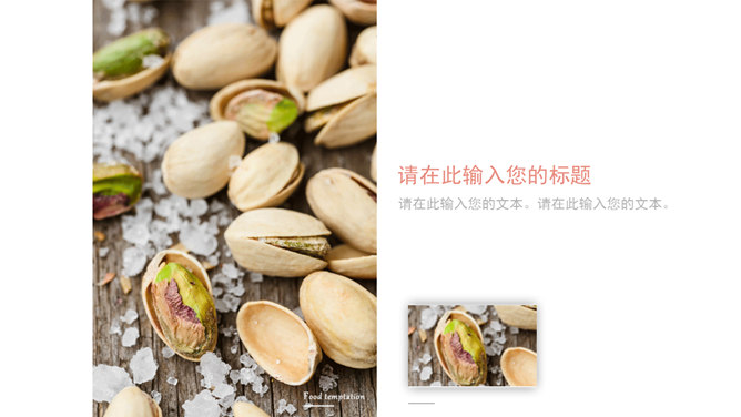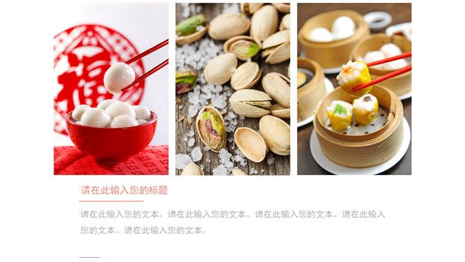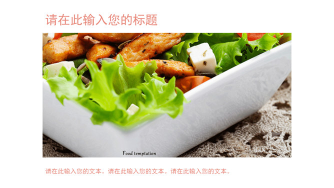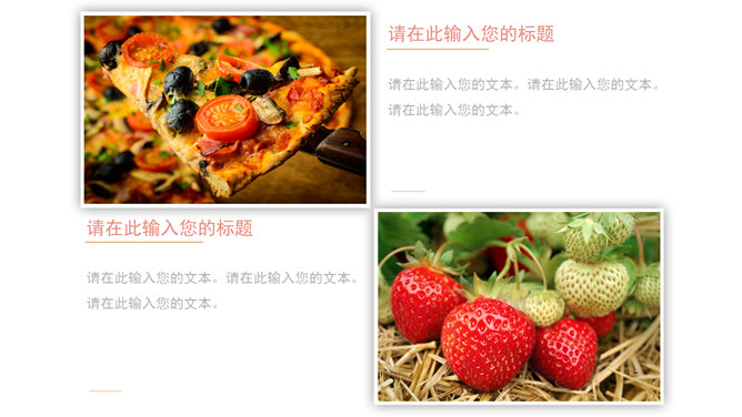 餐饮美味美食PPT模板。一套餐饮美食相关幻灯片模板,以各类好吃的食物图片为背景,适合美食相关主题演示。