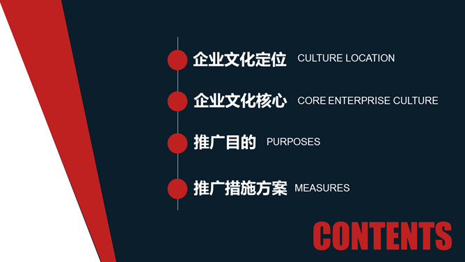 企业文化推广宣传PPT模板。一套企业文化宣传推广幻灯片模板,时尚杂志风设计风格,包括企业文化定位、企业文化核心、推广目的、推广措施方案。