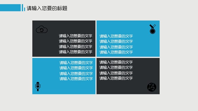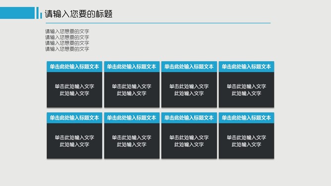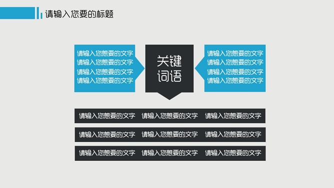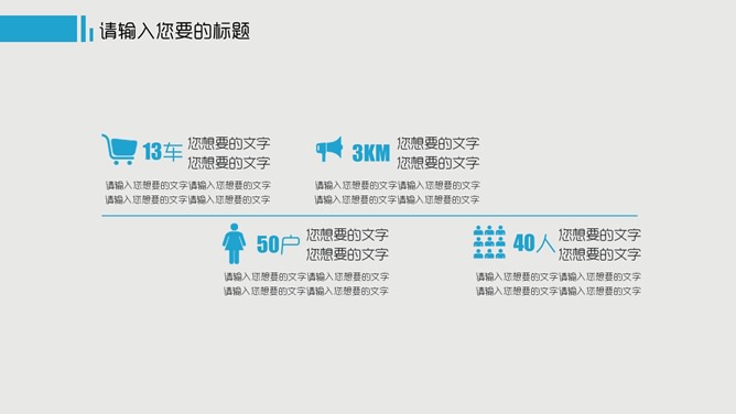这是一个简约大气的商务通用幻灯片模板,以浅灰色为背景色,蓝色和黑色为主色调,采用宽屏和扁平化的设计风格,非常时尚漂亮,通用性强,适用广泛。共16页,包括目录页,文字页,时间线,柱形图,地图等页面,推荐下载使用。