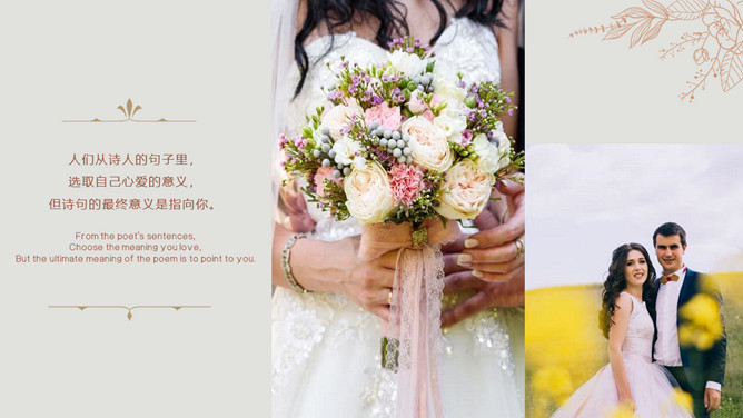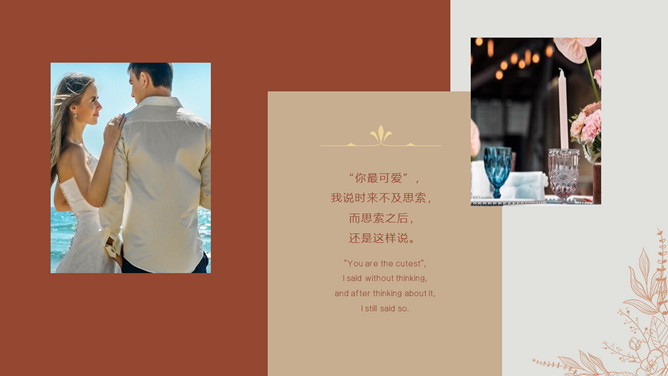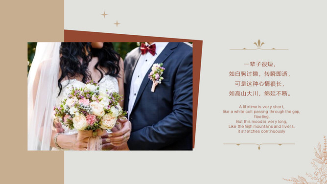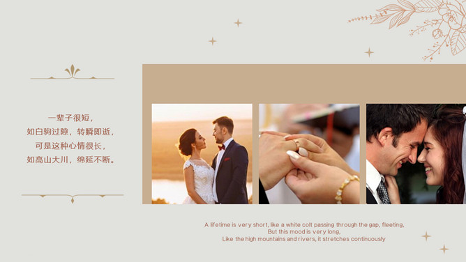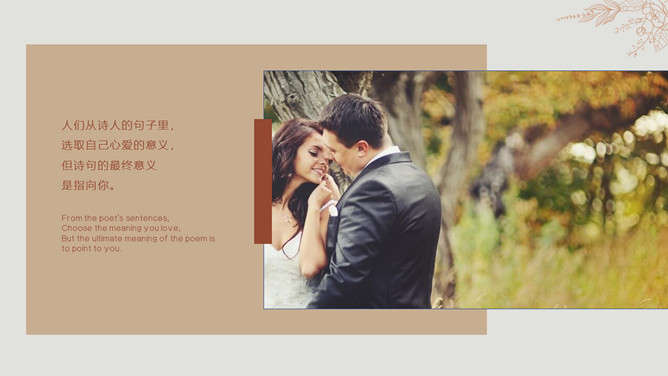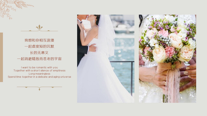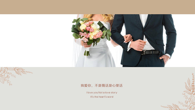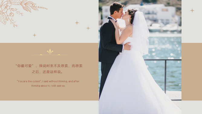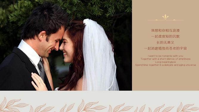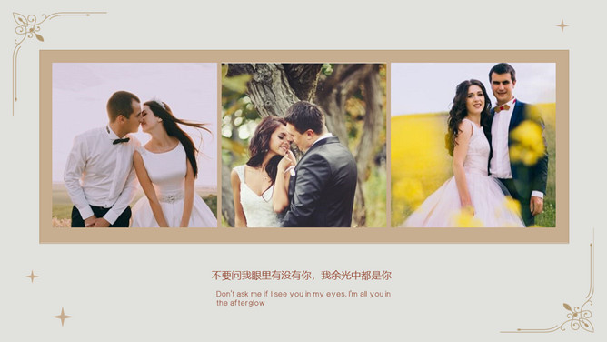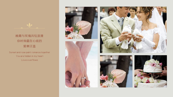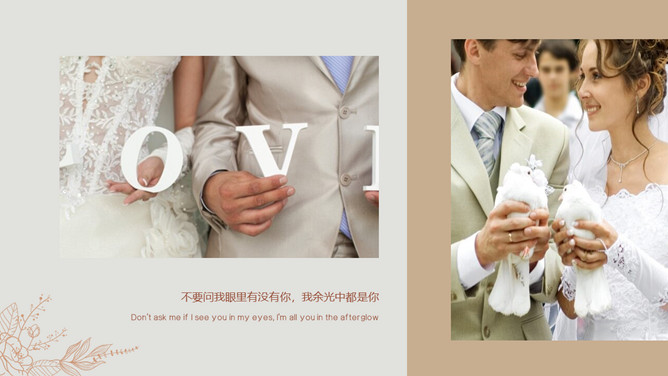 结婚婚礼婚纱相册PPT模板。一套婚纱照皮展示模板,用于婚礼幻灯片展示,多种图文排版方式,动态播放效果。