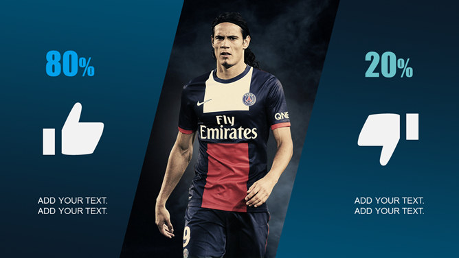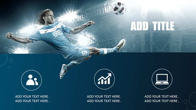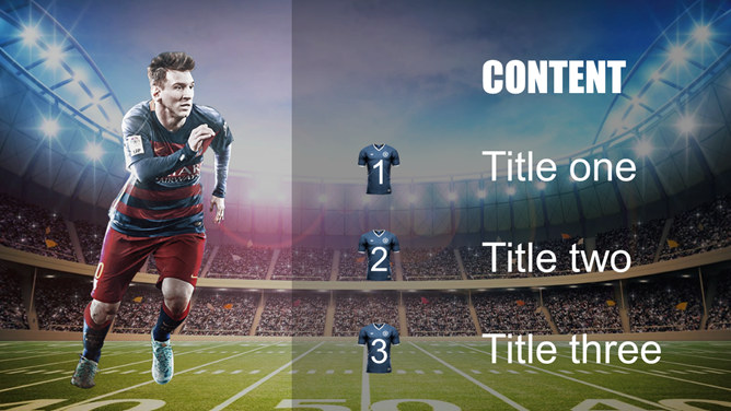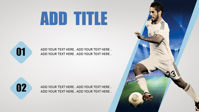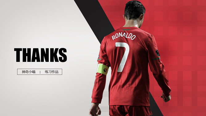 足球明星足球运动PPT模板。一套足球主题幻灯片模板,以踢球的足球明星特写大图为背景,适合足球相关主题演示。