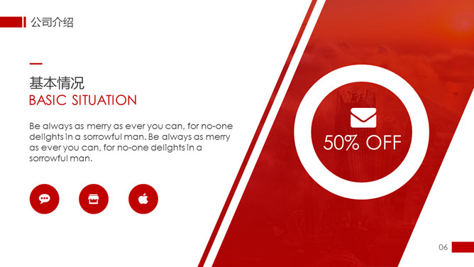 红色高楼商务报告PPT模板。一套精美时尚杂志风幻灯片模板,城市高楼大厦封面背景,红色主色调。