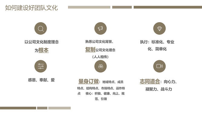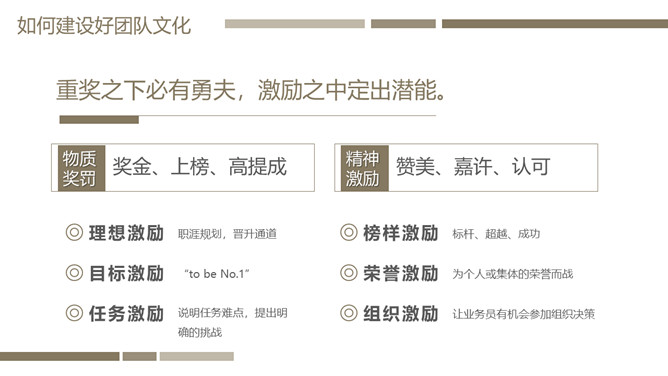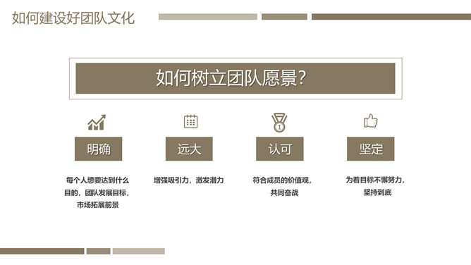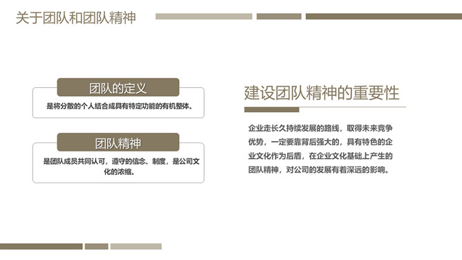 团队管理培训PPT课件模板。内容包括关于团队和团队精神、如何建设好团队文化和如何把控好团队管理的执行。