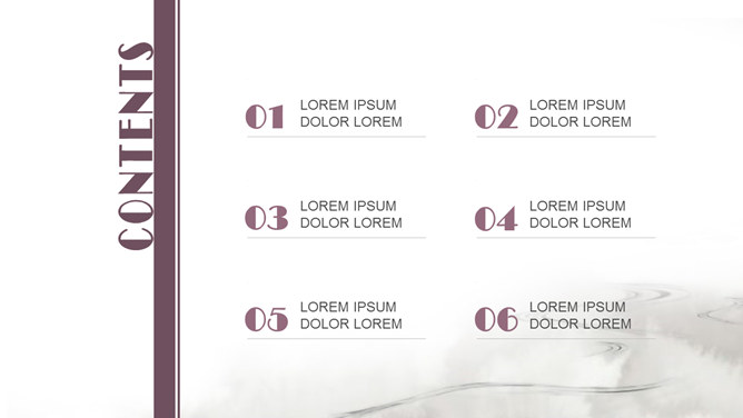 简约淡雅水墨中国风PPT模板。一套中国风幻灯片模板,以淡雅简约水墨风景画为背景,适合中国传统文化相关主题。