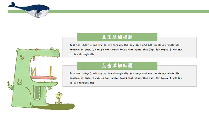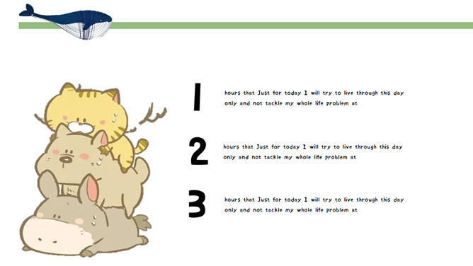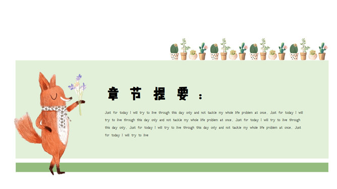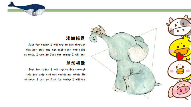 可爱卡通小动物幻灯片模板。一套卡通风格幻灯片模板,可爱小动物素材装饰。建议安装字体: