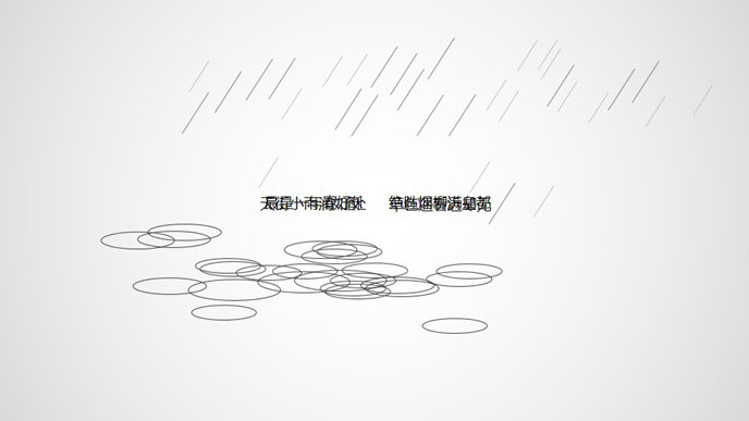 幻灯片片头动画模板。这是一个动态的PPT片头,灰色背景,淡入淡出文字,动态下雨效果,水彩花朵,风格清新淡雅。可用来美化封面页。