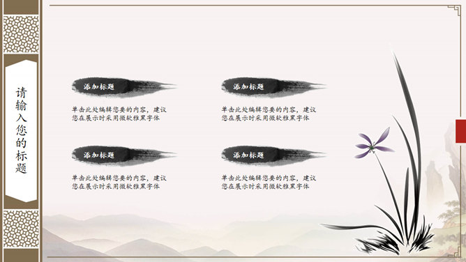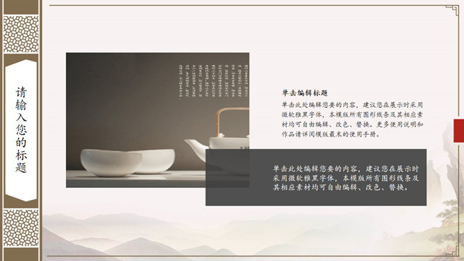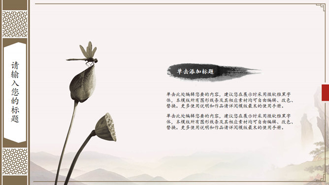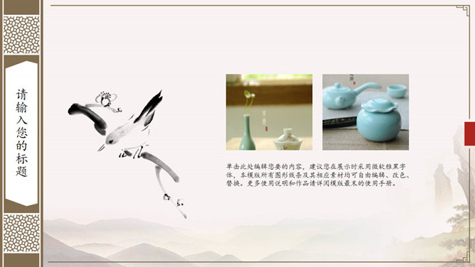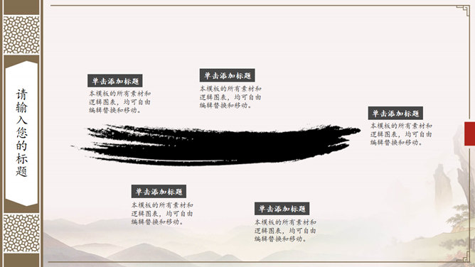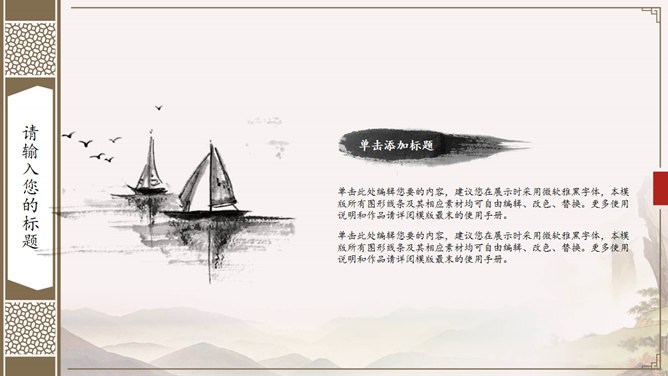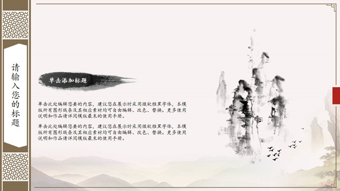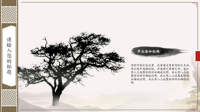 古色古香中国风PPT模板。一套古典中国风幻灯片模板,古色古香水墨效果设计,大气典雅,动态播放。