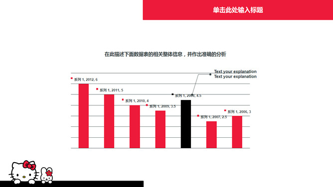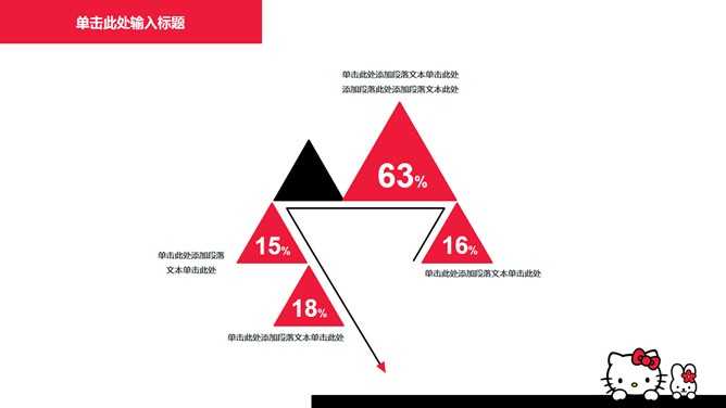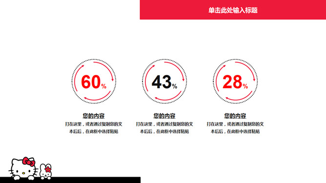 Kitty猫PPT模板。此模板以可爱的Hello Kitty为背景,这个可爱的小猫诞生于1974年,是设计师清水侑子为三丽鸥公司推出一款小钱包设计的图案,当时设计师并不是很喜欢这个图案,意想不到的是这只小猫却逐渐风靡全球。