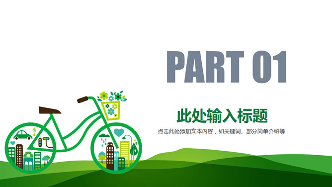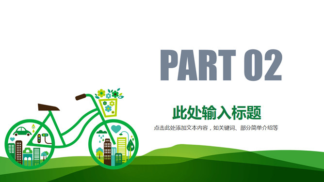 倡导绿色低碳生活PPT模板。一套环境保护,倡导绿色低碳生活幻灯片模板,绿色主色调,动态播放效果。