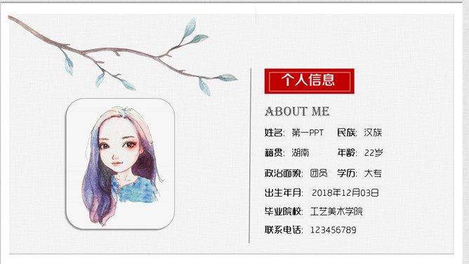 简约唯美女生个人简历PPT模板。一套适合女生使用的个人求职简历、自我介绍模板,极简设计,唯美插花花瓶背景。