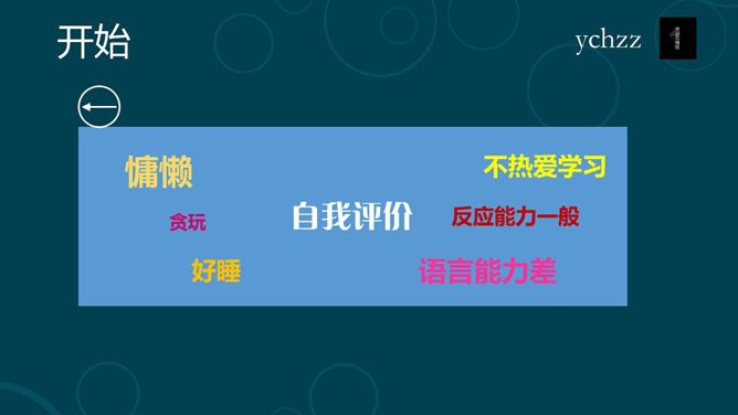 这是一份非常有创意的自我介绍PPT模板。采用Win8开机画面的Metro风格,宽屏的设计和动态的演示效果,非常漂亮。包括基本资料、兴趣爱好、软件水平、自我评价等页面。使用字体:方正粗倩_GBK、Garamond。