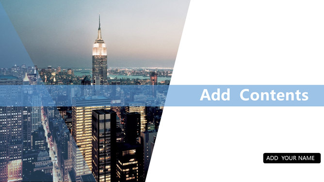 杂志风城市夜景PPT模板。一套时尚杂志风幻灯片模板,城市夜景背景,创意图片排版,动态播放效果。