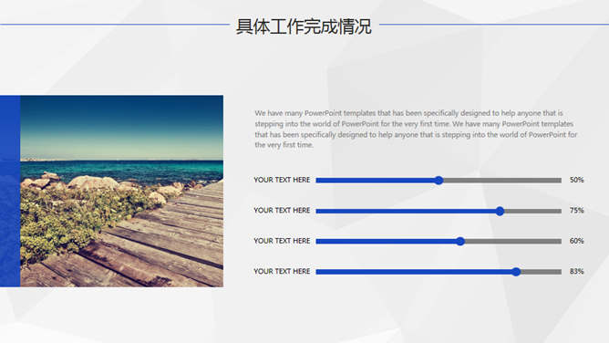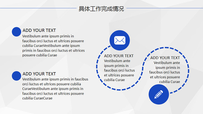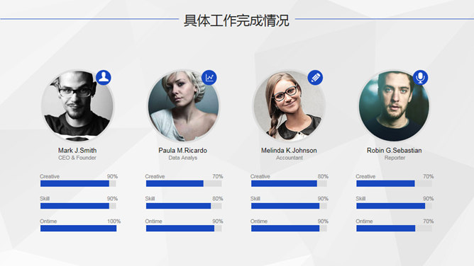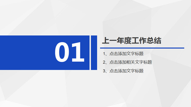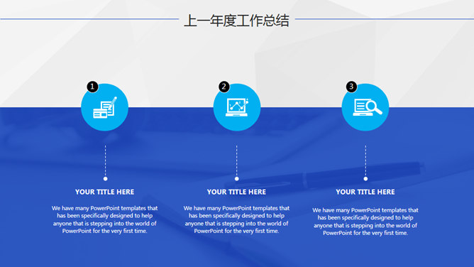 蓝色商务风工作总结PPT模板。一套汇报总结报告幻灯片模板,大气稳重蓝色商务风格,通用性强,动态播放。