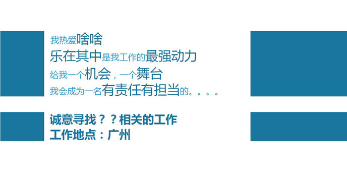 这是一份非常精美的个人求职简历幻灯片模板,共15页,宽屏设计版式。以蓝色为主色调,扁平化的设计风格,华丽的动态效果。介绍了工作经历、获奖经历、工作技能、兴趣爱好等。也适合制作