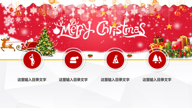 圣诞快乐庆祝圣诞节PPT模板。一套圣诞节主题幻灯片模板,喜庆红色主色调,适合庆祝圣诞节使用。