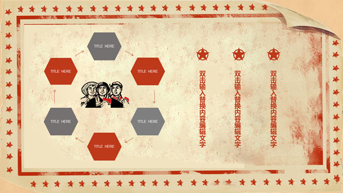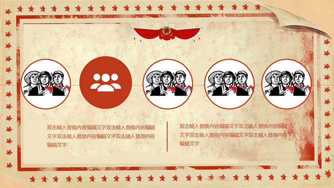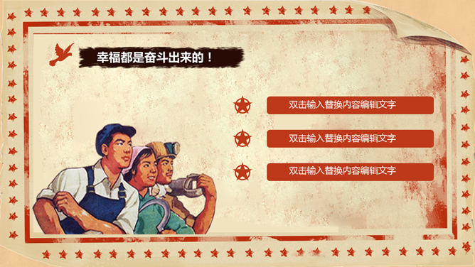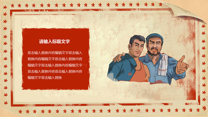 欢庆51劳动节PowerPoint模板。一套精美五一国际劳动节主题幻灯片模板,复古怀旧设计风格,很有创意。
