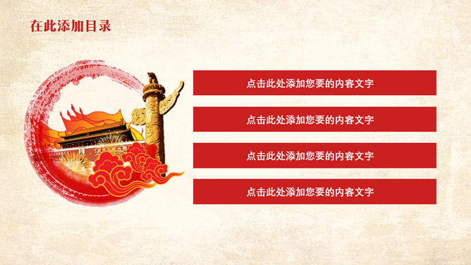 模板。以华表、三军仪仗队等军队元素为背景,适合用于庆祝建军节相关的演示。