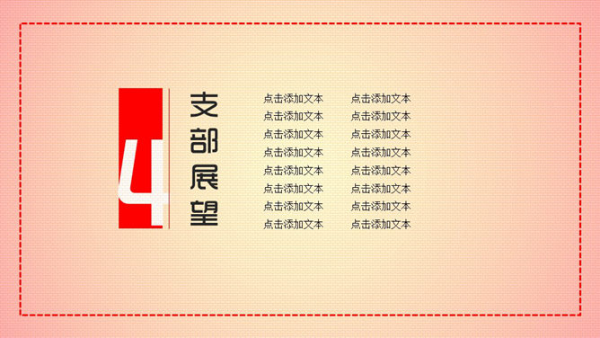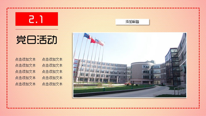 这是一份精美的党支部各类岗位的述职报告PPT模板。采用红色的主色调,风格大气简约,漂亮的动态效果让人眼前一亮。适合用于党支部书记述职报告或制作建党工作总结PPT。使用字体:华康海报体W12(P)、时尚中黑简体。