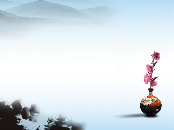 一组以山峦远景为主题的中国画风格的幻灯片背景,很有意境。