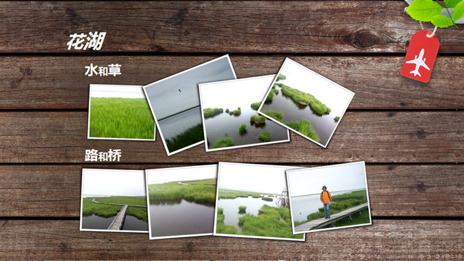 这是一份设计精美的旅游类PPT模板,以原木木条为背景,以绿叶和绘有客机形状的标签为点缀,给人远离城市,亲近自然之感,共15页,主要包括景点的简介、景点风光照片、旅游感受等页面。此模板适用于旅行见闻感受等相关的演示。