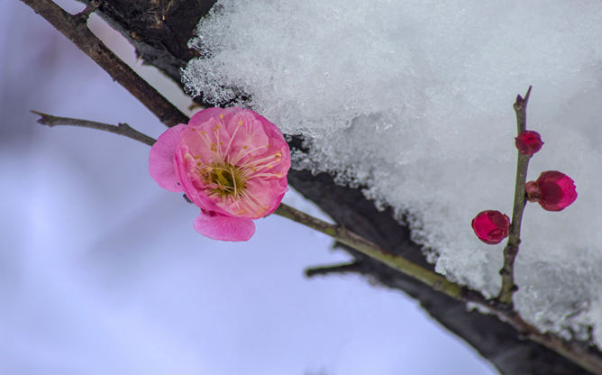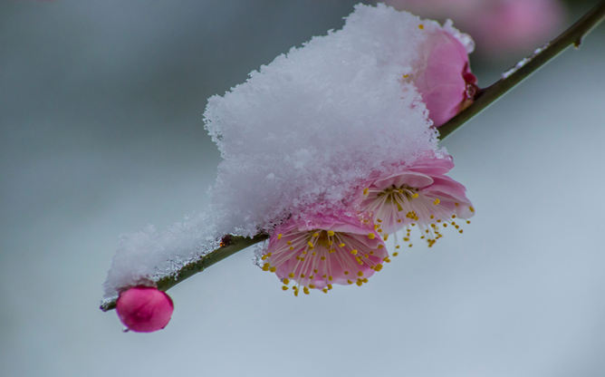 傲雪寒梅PPT背景图片。梅花香自苦寒来,梅花被古人誉为“岁寒三友”,在寒冬迎雪吐艳,凌寒飘香,象征着坚韧不拔,不趋炎附势的高贵品质。适合用于意志品质精神相关的幻灯片。
