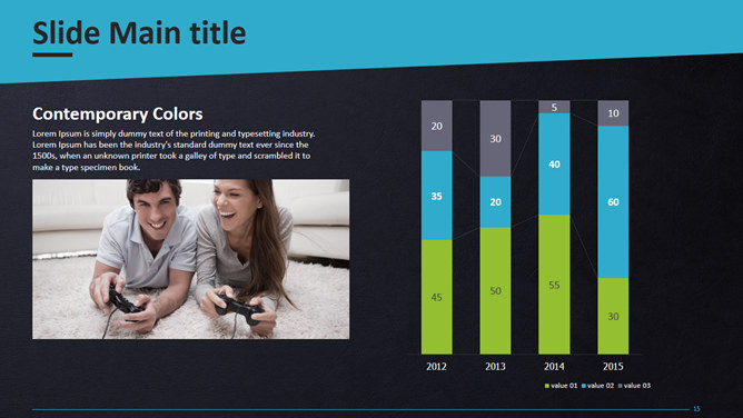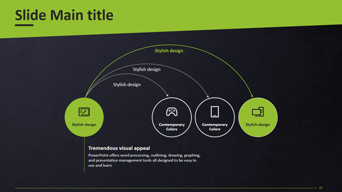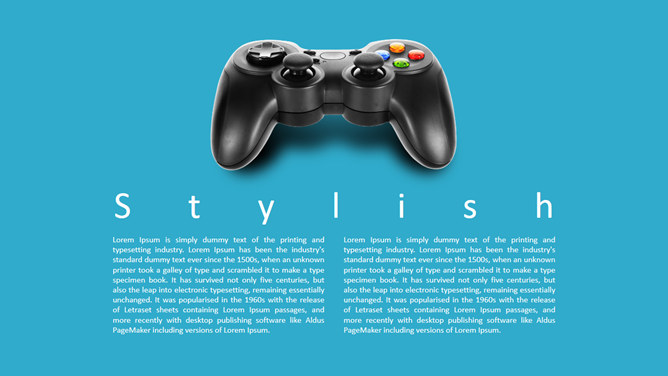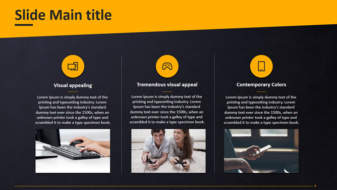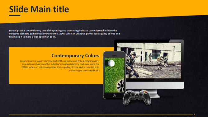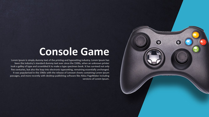 游戏手柄游戏行业主题PPT模板。一套适合游戏相关主题的幻灯片模板,以游戏手柄为主要元素设计,黑黄配色。