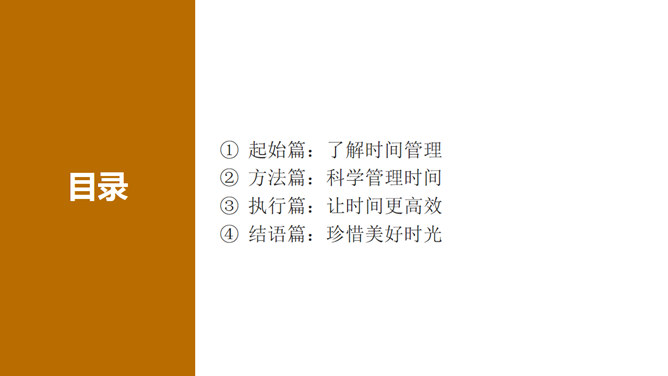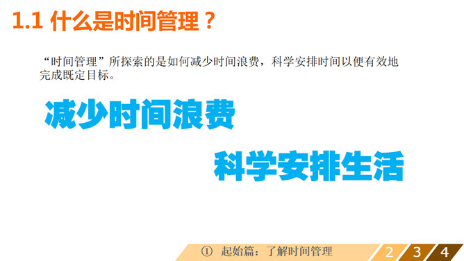 时间管理培训课程PPT课件。包括:了解时间管理、科学管理时间、让时间更高效、珍惜美好时光几部分。建议安装字体: