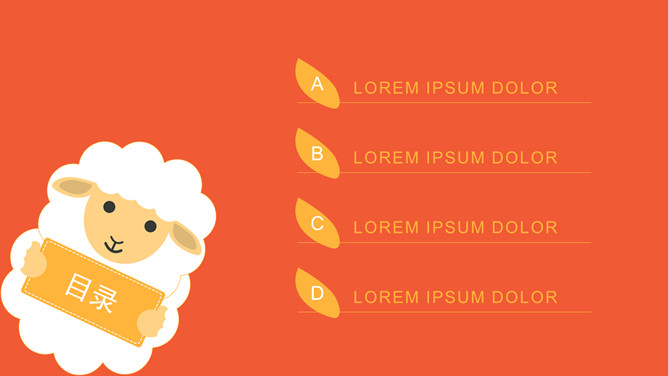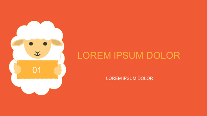 萌萌可爱卡通小羊PPT模板。一套可爱卡通风格幻灯片模板,萌萌的小羊手拿文字牌,红色底色,扁平化设计风格。