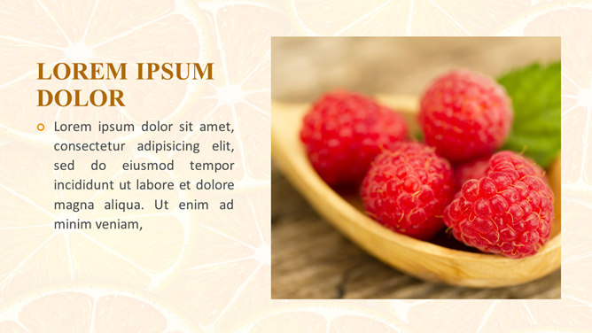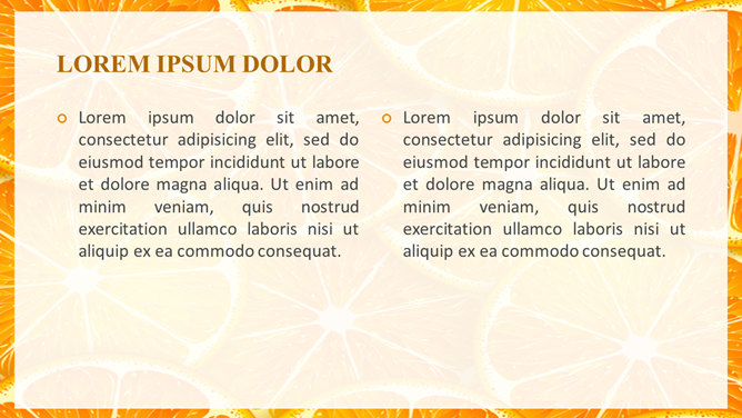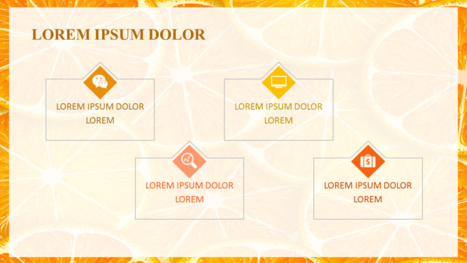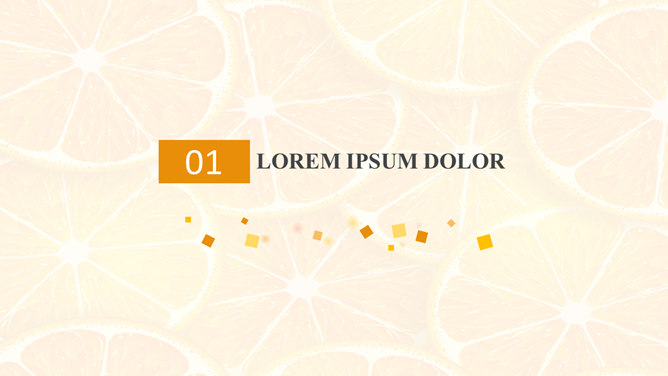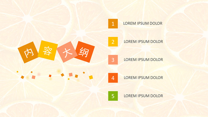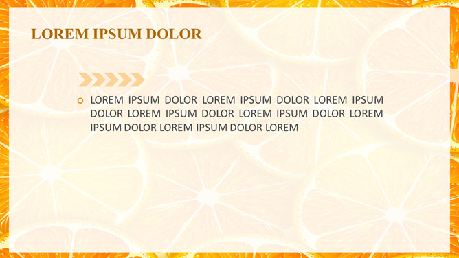 切片橘子橙子水果PPT模板。一套水果相关幻灯片模板,以新鲜的橙色橙子切片图片为背景,适合水果相关主题演示。