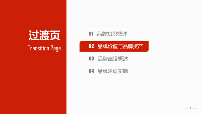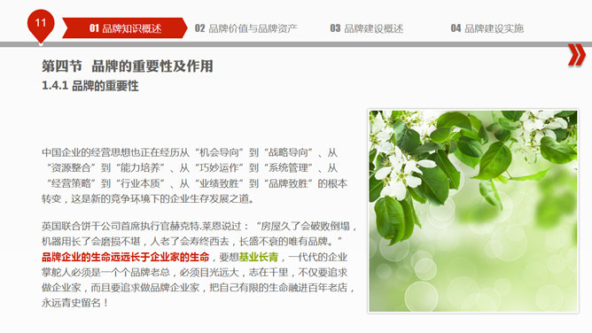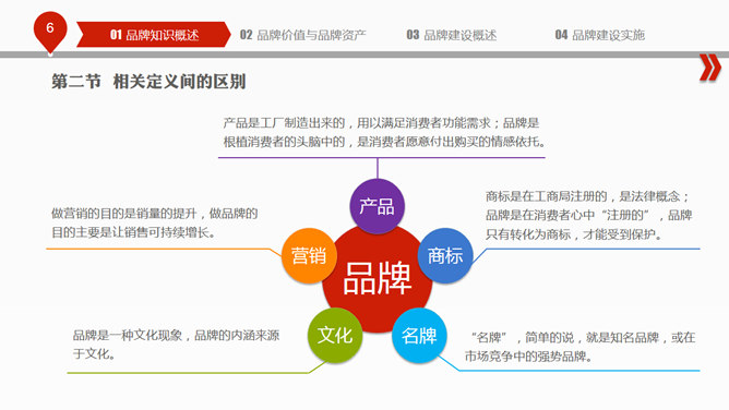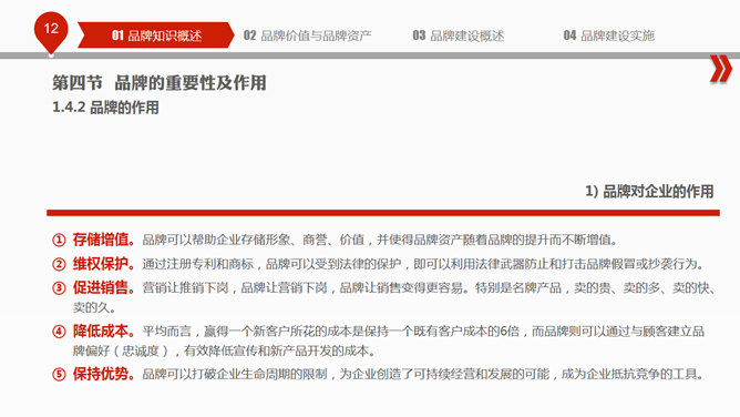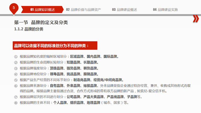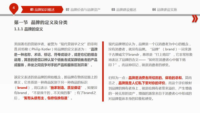布衣公子的企业中高层培训系列之品牌建设PPT培训课件,包括:品牌知识概述、品牌价值与品牌资产、品牌建设概述、品牌建设实施四个部分。使用字体: