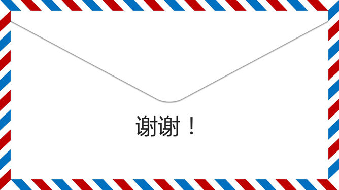 一份航空信件风格的PPT模板,非常有创意,内页采用稿纸风格,还包括邮票风格图片展示页面和数据页面。