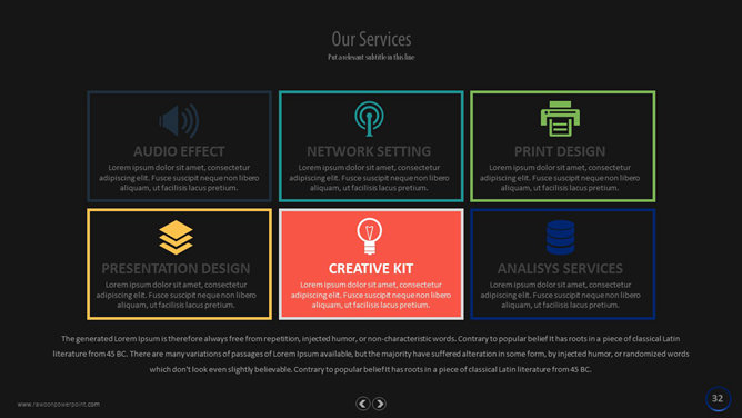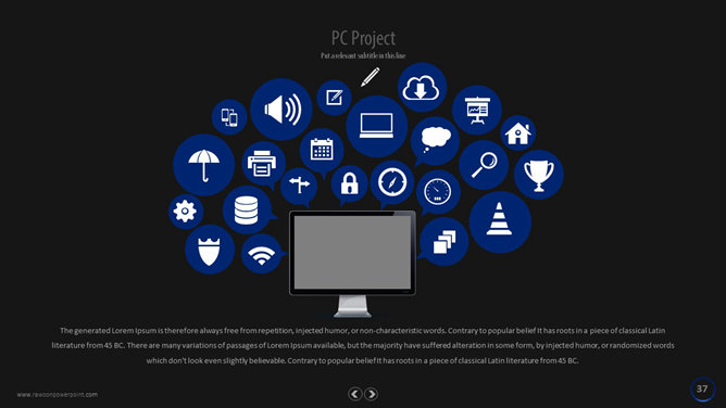 一份国外的不容错过的幻灯片模板,黑灰色背景,极简风格,共120页,页面丰富,功能超强,更多页面请下载观看。