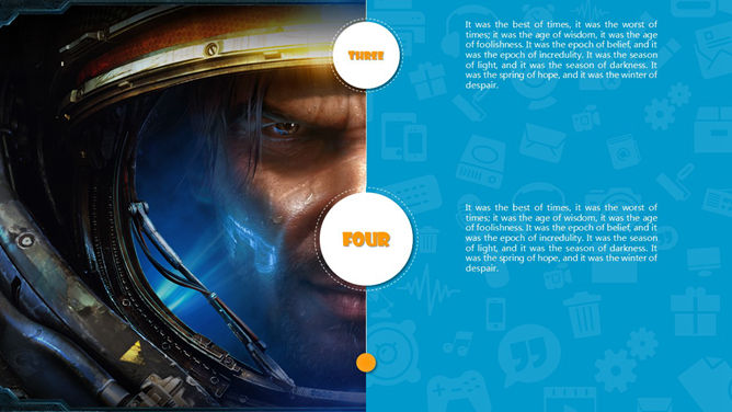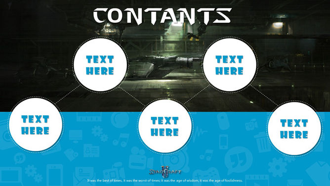 一份游戏星际争霸2主题PPT模板,设计的非常精美,可用于星际争霸玩法、操作、世界观的设定、出品公司等的介绍。建议安装字体: