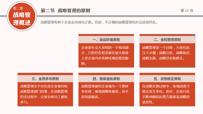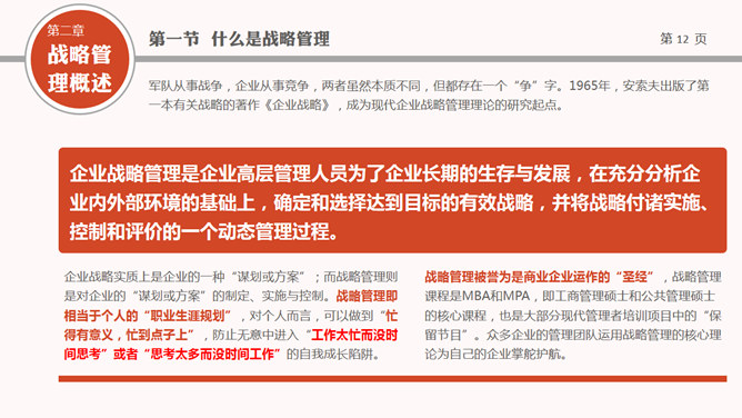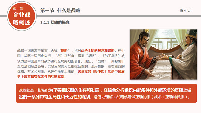 布衣公子高层领导培训系列PPT课件之企业战略管理,包括企业战略概述、战略管理概述、战略管理过程三个部分。使用字体: