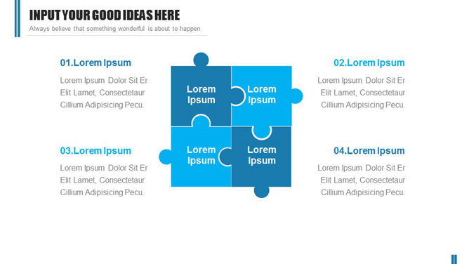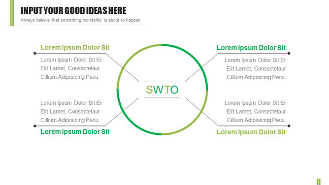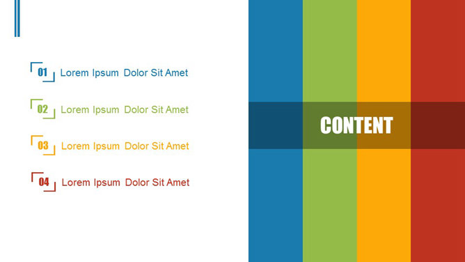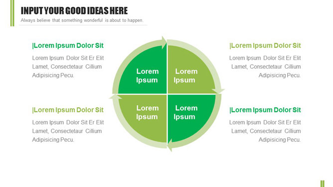 一份简约清新的幻灯片模板,4个章节4种配色,无缝动态切换效果,图表页面丰富,关键词: