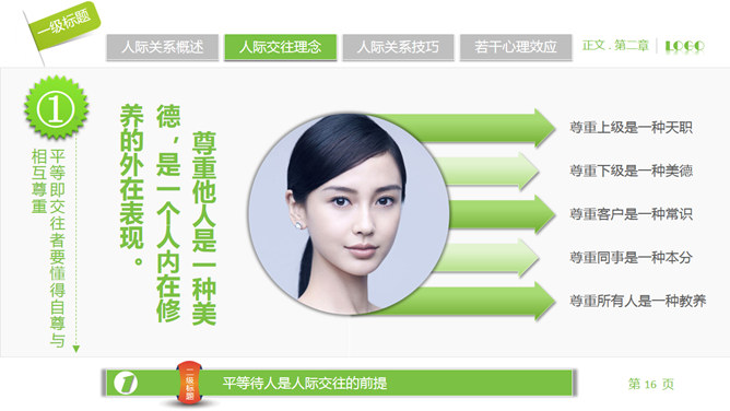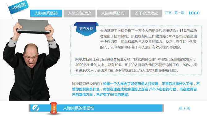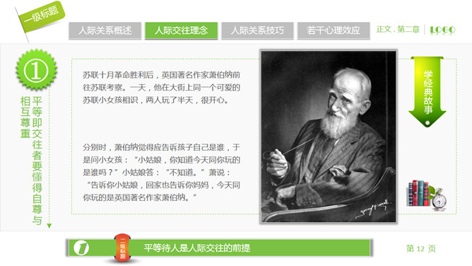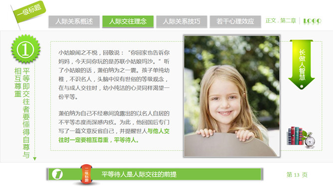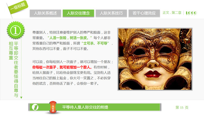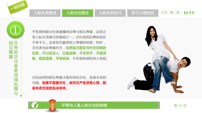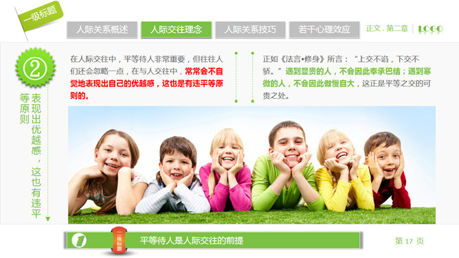 布衣公子的员工在职培训PPT课件系列之:人际关系宝典,目录:人际关系概述、人际交往理念、人际关系技巧等。