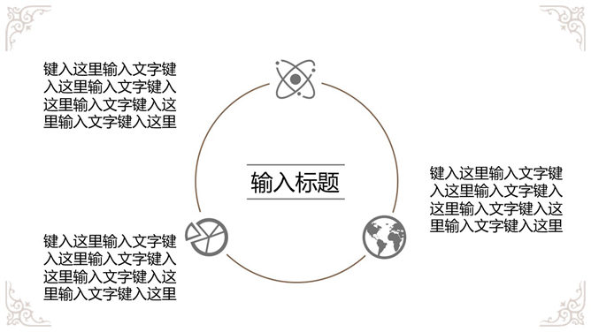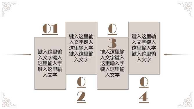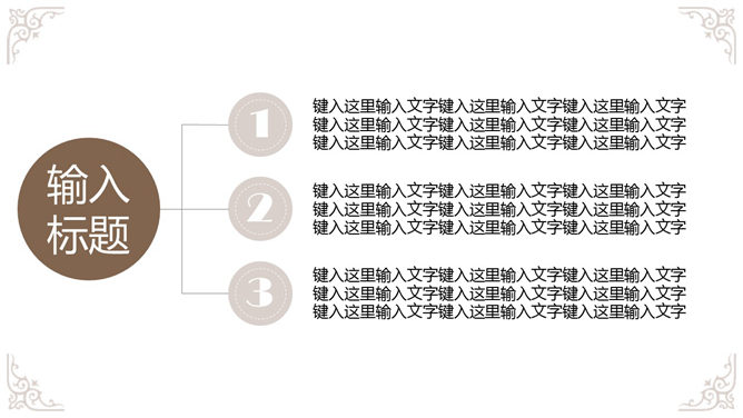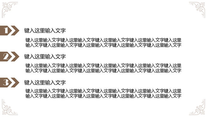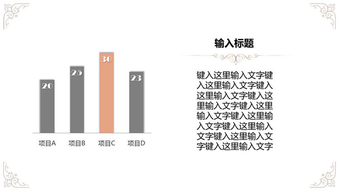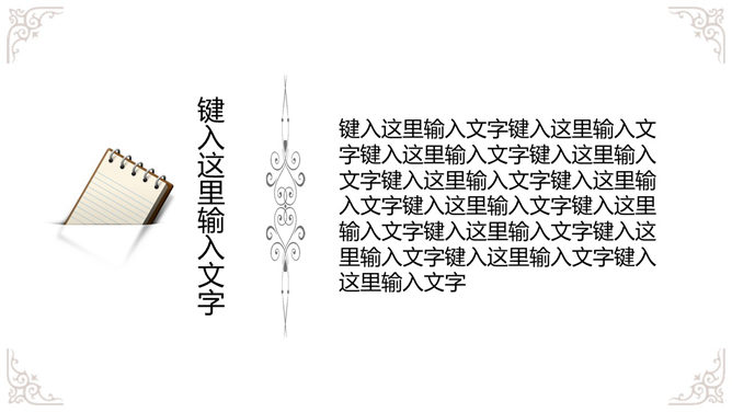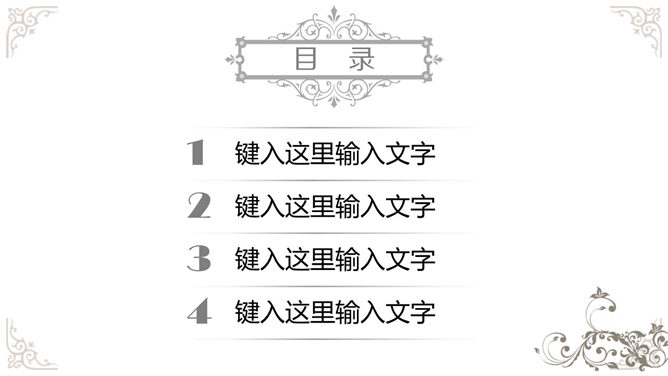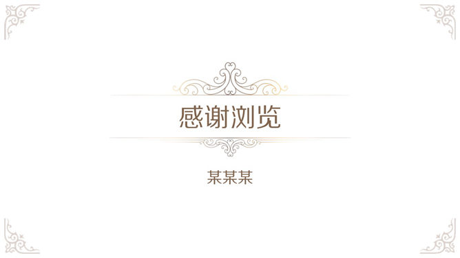 奢华欧式复古花纹幻灯片模板,白色底色,欧式古典花纹装饰,共19页,给人既简约,又贵气奢华的感觉。使用字体: