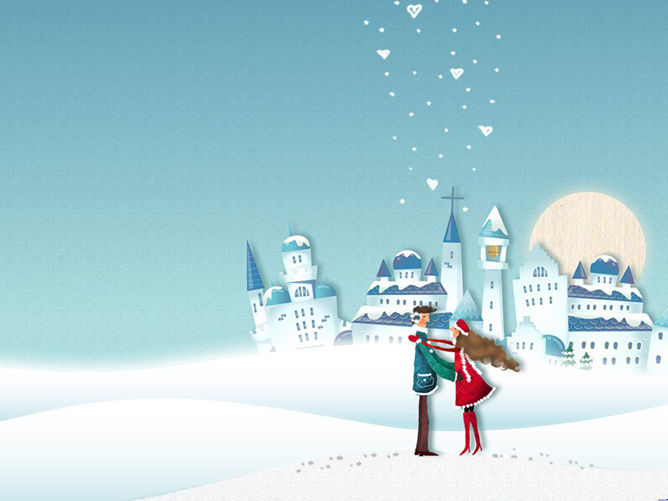 雪地中浪漫的情侣PPT背景图片,浪漫唯美,两张,JPG格式,1024×768分辨率。