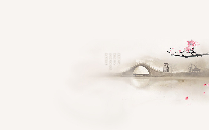 桃花小鸟拱桥古典PPT背景图片,JPG格式,1440x900分辨率。关键词:春天 桃花 小鸟 拱桥 西湖