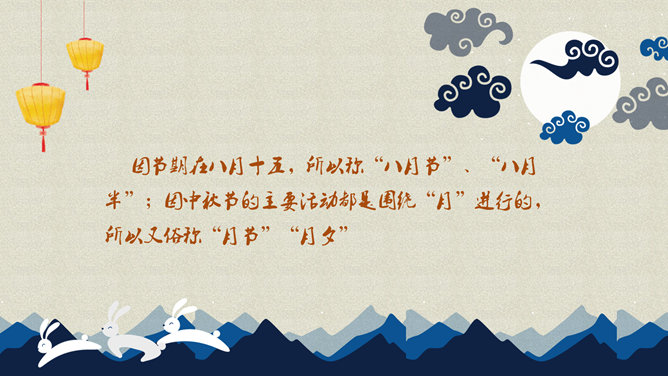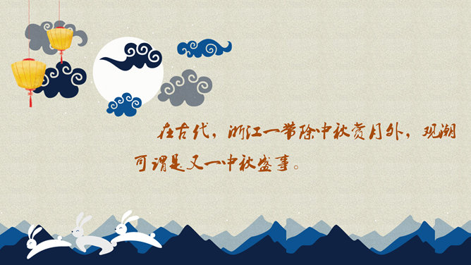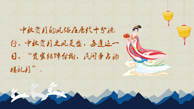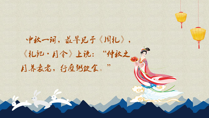 一份设计精美的中秋节PPT动画,动态效果非常漂亮,嫦娥端着一盘月饼换换飞向月亮,水墨荷花荷塘,鱼儿游来游去。