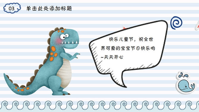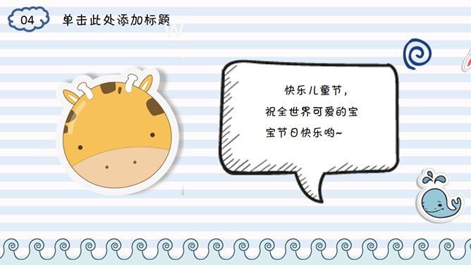 六一儿童节快乐PPT模板。一套欢乐六一儿童节幻灯片模板,非常可爱的卡通素材设计。使用字体: