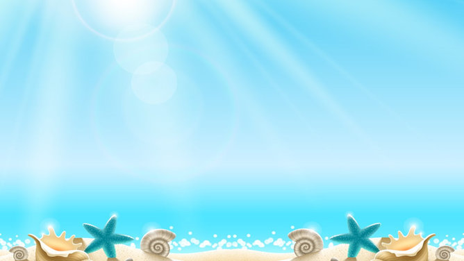 沙滩贝壳海星幻灯片背景图片,2页宽屏,pptx格式。关键词:阳光光线 海螺贝壳 海边沙滩