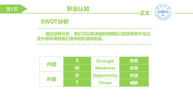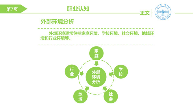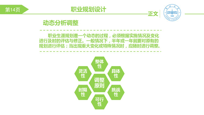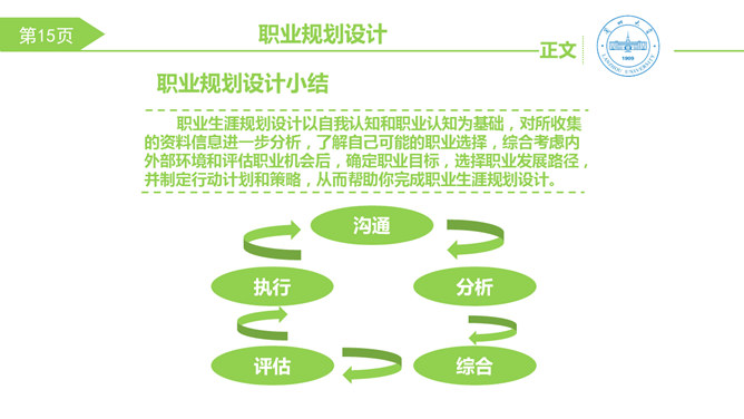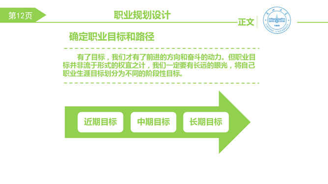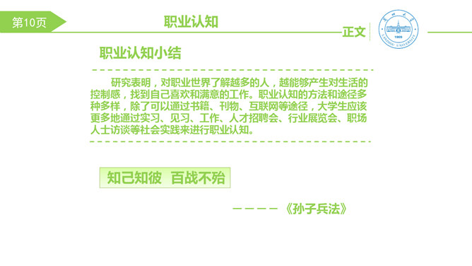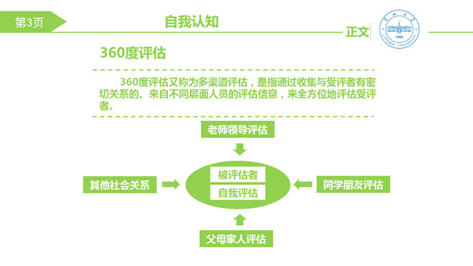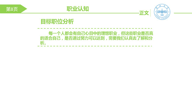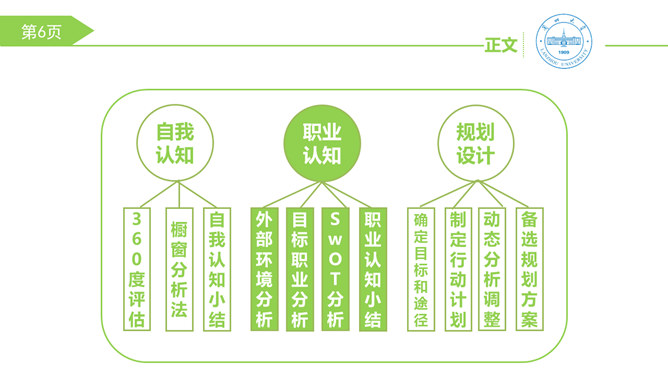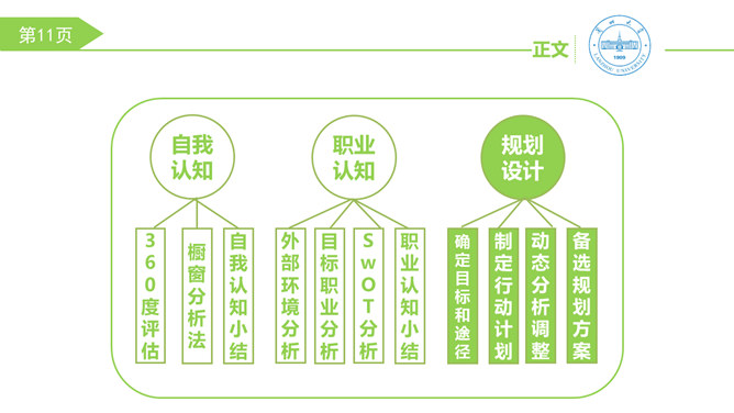 ,动态播放效果,绿色主色调,包括自我认知、职业认知、规划设计。