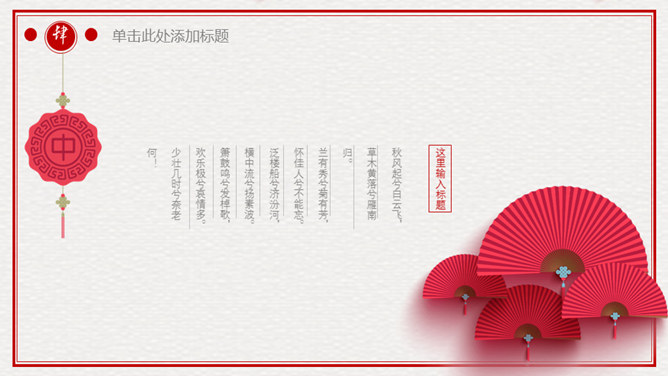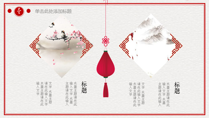 红色喜庆春节中国结PPT模板。一套喜庆中国风幻灯片模板,简约雅致,红色中国结、灯笼装饰,适合春节使用。