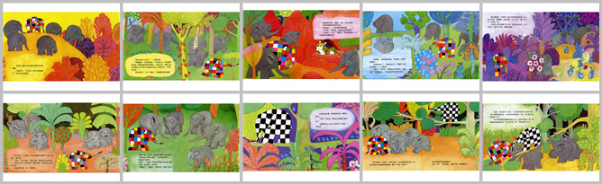 《艾玛和韦伯》绘本故事PPT。花格子大象艾玛在等他的表弟韦伯来看他。“他迟到了,”艾玛说,“说不定他迷路了。我去找找他吧。”“韦伯长得什么样子?”一只象问道。“等着瞧吧,”艾玛咯咯笑,“不过要小心,韦伯喜欢恶作剧,特别是用他的声音骗人。他会口技。他能让他的声音听上去不是从他喉咙发出来,而是从另一个地方发出来。”“那太好玩了,”另一只象说