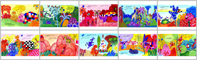 《艾玛捉迷藏》绘本故事PPT。“艾玛,现在轮到你躲起来了。”“小鸟,那一定很好玩。数到10就来找我吧。”“不管你躲好没躲好,我来了,艾玛……我看得见你在树木当中!”“哎呀!你好啊,狮子。我还以为你那把阳伞是艾玛呢!”“太好玩了,小鸟!瞧,艾玛在那里……”“哎呀!你们好,长颈鹿。我还以为那风筝是艾玛呢。”“太好玩了,小鸟!瞧,艾玛在那里……”